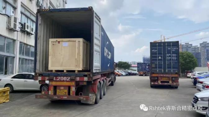 睿斯合點(diǎn)膠機(jī)出發(fā)海外打包現(xiàn)場(chǎng)